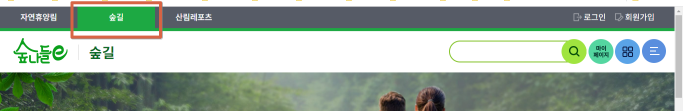 1. 숲나들e 홈페이지로 이동합니다.