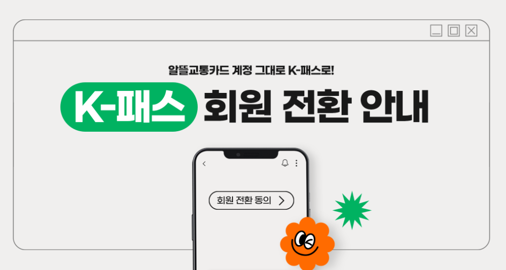 모바일 앱또는 알뜰교통카드 누리집(홈페이지)에서 K-패스로 전환할 수 있습니다.