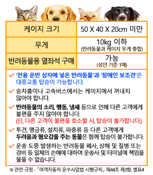 고속버스 반려동물 동반탑승 안내