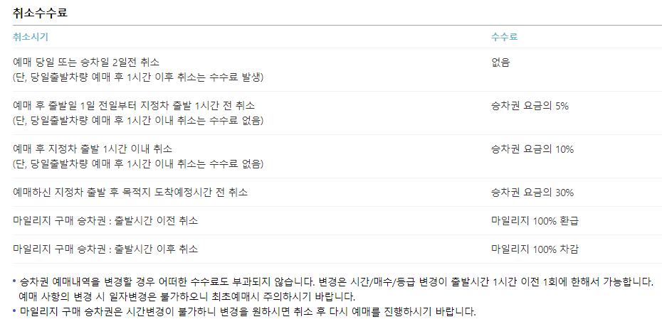승차권 예매를 취소할 경우에는 출발일자를 기준으로 취소 수수료가 부과됩니다.