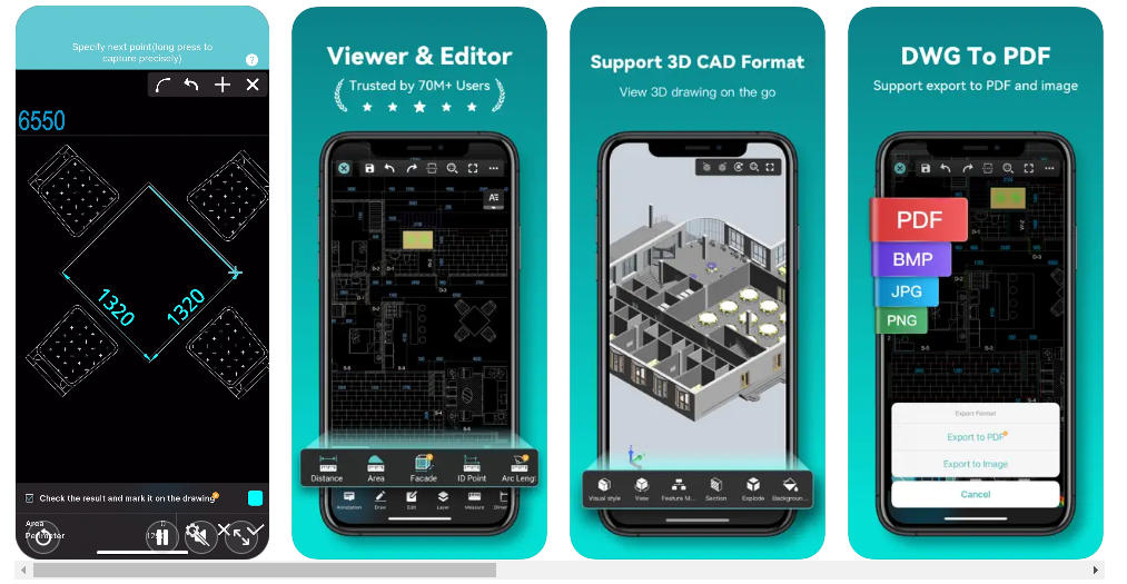 모바일에서도 다운로드해서 사용할 수가 있는데 DWG Fastview는 GstarCAD, AutoCAD 및 기타 CAD 플랫폼 파일의 2D 및 3D 도면을 구동하며 CAD 디자인 또한 autocad drafting, revit blueprint와 dxf.etc 처럼 볼 수 있습니다.